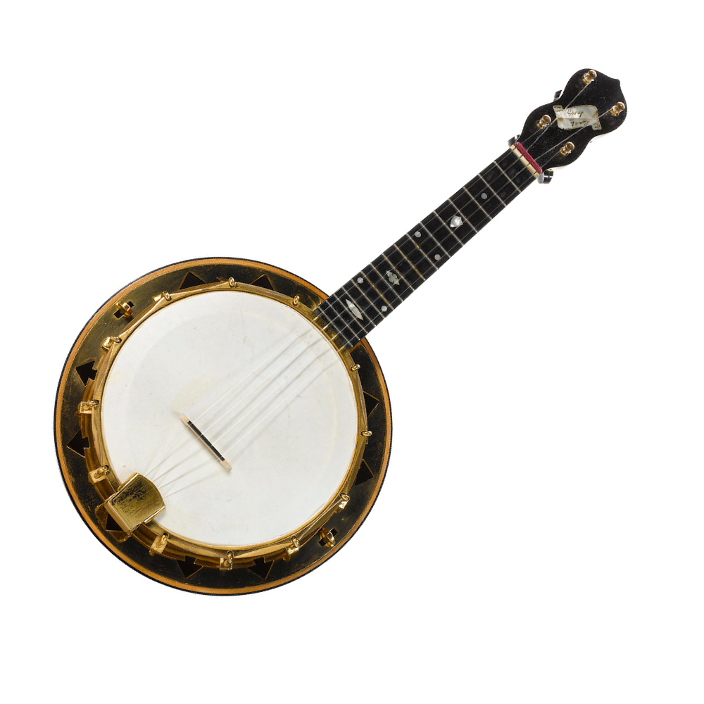 Lancashire man George Formby is almost singularly responsible for the banjo-uke having survived beyond the big-band years. He enjoyed immense success as an entertainer, making the transition from the vaudeville halls where he got his start in the early 20’s, to the silver screen throughout the 30’s and 40’s. His racy innuendos and cheeky persona were not to the taste of stuffy post-war britain, and his popularity and health began to wane throughout the 50’s. Nonetheless he continued to perform until his death in 1961.